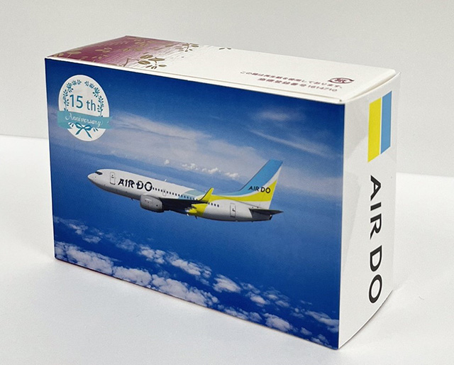エア・ドゥの仙台就航15周年記念「萩の月」オリジナルパッケージ(同社提供)