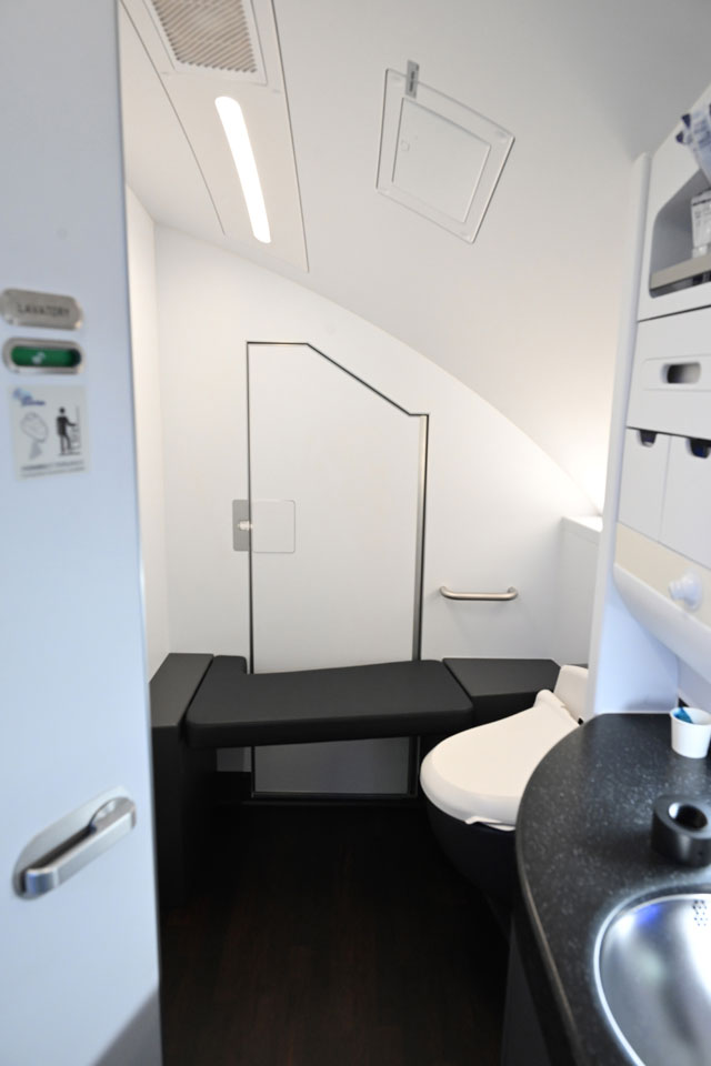 ANA A380 3号機のファーストクラスのラバトリー=23年10月19日 PHOTO: Tadayuki YOSHIKAWA/Aviation Wire
