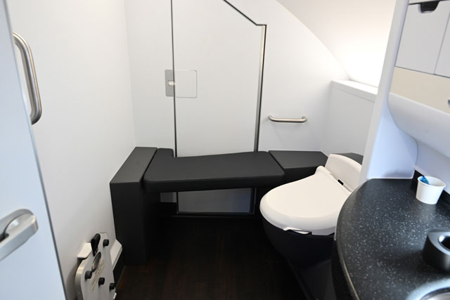 ANA A380 3号機のファーストクラスのラバトリー=23年10月19日 PHOTO: Tadayuki YOSHIKAWA/Aviation Wire