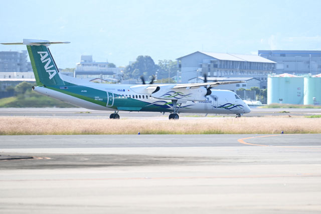 伊丹空港を離陸するANA Future Promise Prop初便の青森行きNH1853便=23年10月23日 PHOTO: Tadayuki YOSHIKAWA/Aviation Wire