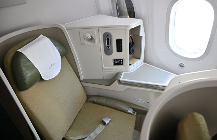 ベトナム航空のハノイ行きVN385便のビジネスクラス=23年9月 PHOTO: Tadayuki YOSHIKAWA/Aviation Wire