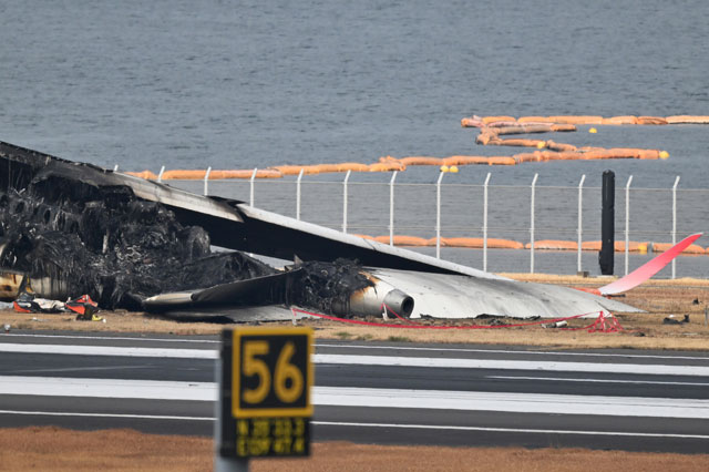 海保機との衝突で焼け落ちたJALのA350-900 JA13XJ=24年1月3日 PHOTO: Tadayuki YOSHIKAWA/Aviation Wire