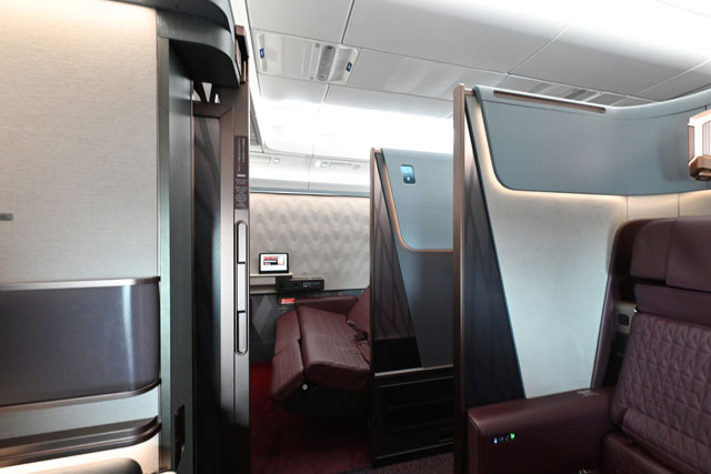 羽田空港で国内初公開されたJAL A350-1000初号機の個室ファーストクラス=24年1月15日 PHOTO: Tadayuki YOSHIKAWA/Aviation Wire