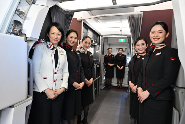 「我々は安全安心な旅を提供するのが使命。日本人のホスピタリティあるサービスを提供し、JALを海外の人にも御愛顧いただきたい」(赤坂社長)と、A350-1000導入により、日本らしいサービスに磨きをかけていく意気込みを語った。