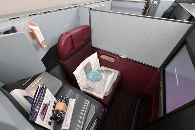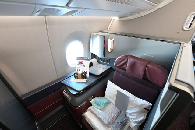 ファーストクラスは、座席上のオーバーヘッドビン(手荷物収納棚)をすべてなくし、ビジネスは窓側のみとすることで開放感のある客室に仕上げた。ファーストの各席は高さ約157センチ(62インチ)の壁で仕切られており、ビジネスも約132センチ(52インチ)の壁を設けることで、個室感を高めてリビングのように過ごせるようにした。