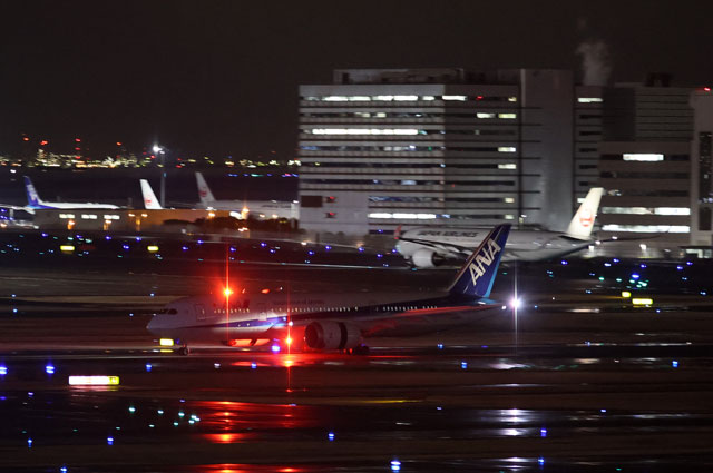 羽田空港に着陸するANAの787初号機JA801Aのトリトンブルー塗装最終便となったソウル金浦発NH868便=24年3月1日 PHOTO: Yoshikazu TSUNO/Aviation Wire