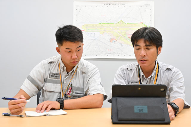 ANAとJALのグラハン資格の相互承認により、仙台空港でJALのPBB資格取得のための座学講習を受ける日通の福田陸斗さん(左)=24年5月14日 PHOTO: Tadayuki YOSHIKAWA/Aviation Wire
