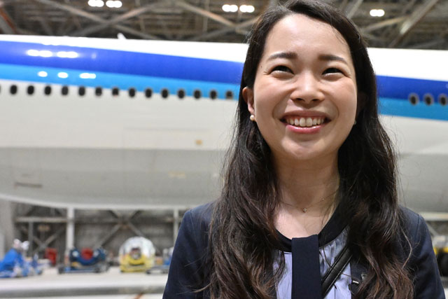 羽田空港の格納庫でのウェディングフォト撮影を企画したANA Xの西尾さん=24年6月28日 PHOTO: Tadayuki YOSHIKAWA/Aviation Wire