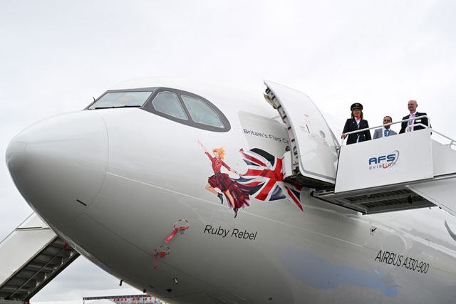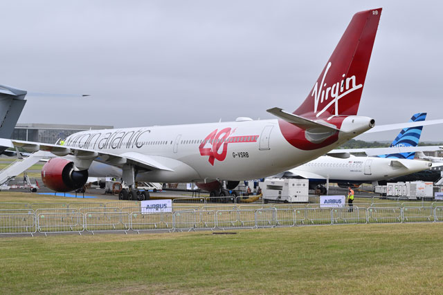 ファンボロー航空ショーの会場に展示されたヴァージン・アトランティック航空のA330-900=24年7月23日 PHOTO: Tadayuki YOSHIKAWA/Aviation Wire