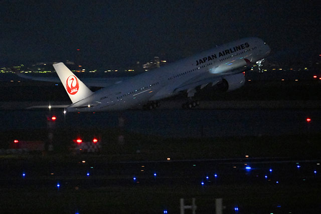 羽田空港のC滑走路を離陸するJAL A350-1000 4号機初便ニューヨーク行きJL4便=24年8月17日 PHOTO: Tadayuki YOSHIKAWA/Aviation Wire