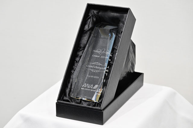 第8回Haneda’s Prideコンテストのグランプリの中井さんに贈られたトロフィー=24年9月10日 PHOTO: Tadayuki YOSHIKAWA/Aviation Wire