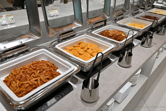 福岡空港の国際線ラウンジ「ラウンジ福岡」のフード&ドリンクコーナー=24年9月25日 PHOTO: Tadayuki YOSHIKAWA/Aviation Wire