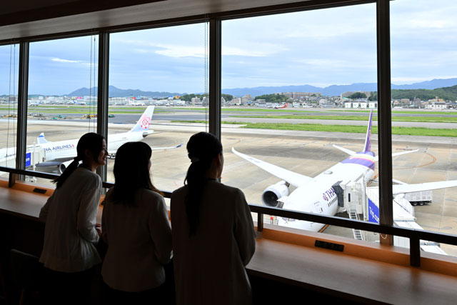 福岡空港の滑走路を一望できる国際線ラウンジ「ラウンジ福岡」=24年9月25日 PHOTO: Tadayuki YOSHIKAWA/Aviation Wire