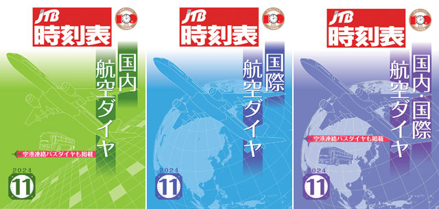 発売したのは「JTB時刻表 国内航空ダイヤ」「JTB時刻表 国際航空ダイヤ」「JTB時刻表 国内・国際航空ダイヤ」の3種類。国内線は冬ダイヤ初日の10月27日から2025年1月6日までの最新ダイヤを、国際線は10月27日から2025年3月29日までの冬ダイヤを掲載した。「国内・国際航空ダイヤ」は国内線と国際線を1冊にまとめた。いずれもLCCを含めた日本発着旅客便の運航スケジュールを載せる。