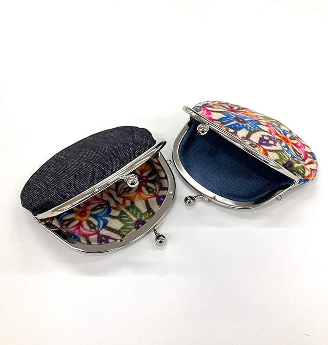 JTAの紅型ヘッドレストカバーをアップサイクルしたがま口ポーチ(同社提供)