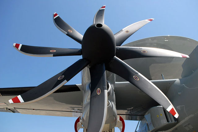 早期警戒機E-2Dの8枚ブレード(ノースロップ・グラマン提供)