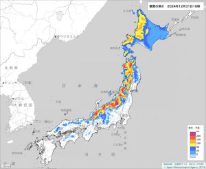 31日午後4時の積雪の深さ(気象庁のサイトから)