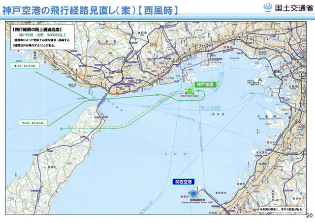 神戸の飛行経路見直し後の西風時経路(国交省の資料から)