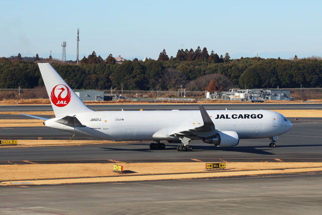 成田空港に到着するJALの767-300BCF 3号機JA621J=25年1月17日 PHOTO: Youichi KOKUBO/Aviation Wire