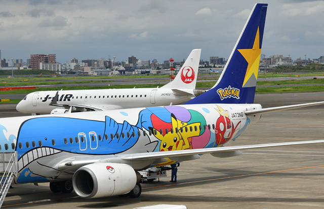 羽田で出発を待つスカイマークの下地島行きBC613便(手前)。奥は下地島と同じく暫定配分のJALの三沢行き=22年7月 PHOTO: Yusuke KOHASE/Aviation Wire