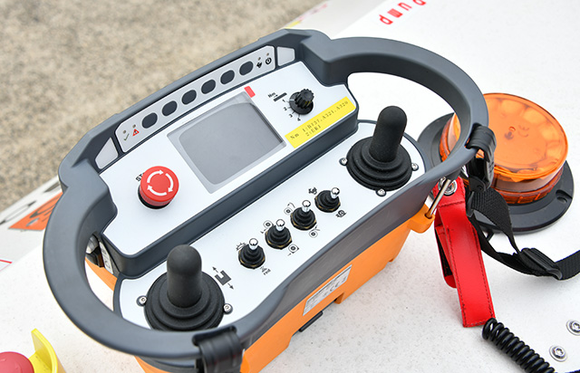 JALが3月に導入予定のリモコン式航空機けん引機器「Spacer 8600 NG」に備えるリモコン=25年1月27日 PHOTO: Yusuke KOHASE/Aviation Wire