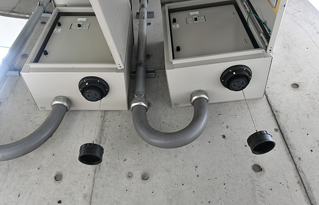羽田空港にある電源設備は、ターミナルを運営する日本空港ビルデング(9706)が整備。現在は3番スポット(駐機場)の柱内に3口設置済みで、6番スポット付近にも3月をめどに3口導入する。