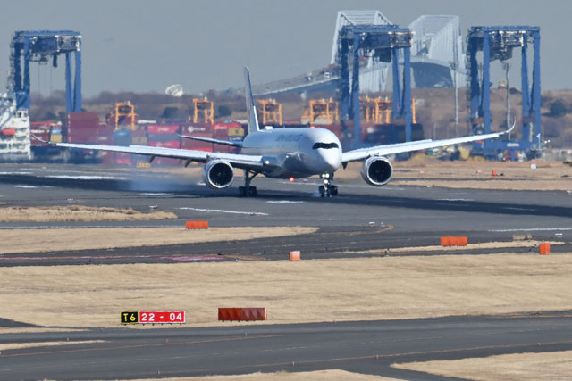 羽田空港のB滑走路へ着陸するJALのA350-1000 9号機JA09WJ=25年1月30日 PHOTO: Tadayuki YOSHIKAWA/Aviation Wire