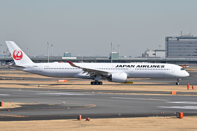 羽田空港のB滑走路へ着陸し212番スポットへ向かうJALのA350-1000 9号機JA09WJ=25年1月30日 PHOTO: Tadayuki YOSHIKAWA/Aviation Wire
