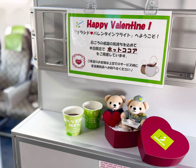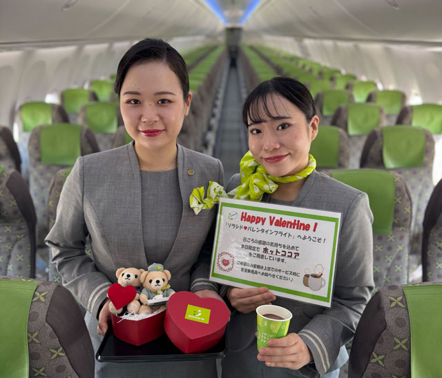 ソラシドエア(SNJ/6J)は、2月14日のバレンタインデーに全便で「ソラシド バレンタインフライト」を開催する。