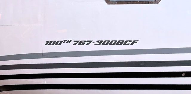 順豊航空へ引き渡された767-300BCFに描かれた100機目のエンブレム(ボーイング提供)