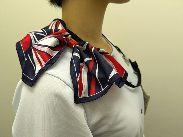 JAL PLAZAのスタッフが着用するスカーフ(JALUX提供)