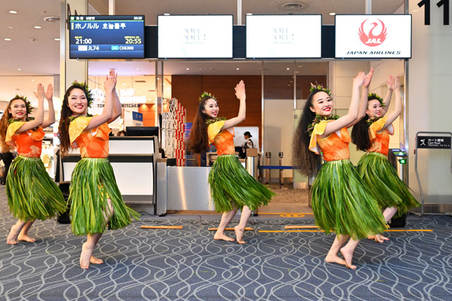 日本航空(JAL/JL、9201)は3月1日、羽田空港で「ʻOLUʻOLU! Honolulu!(オルオル!ホノルル!)」の出発式を開いた。「オルオル」はハワイ語で「ここちよさ、思いやり」を表す言葉で、現地でダイヤモンドヘッドのサンセットツアーや伝統農業体験などを通じ、旅行者にハワイの文化や環境保全などに関心を持ってもらう。