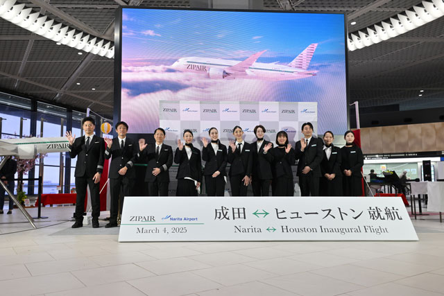 日本航空(JAL/JL、9201)が100%出資する中長距離国際線LCC、ZIPAIR(ジップエア、TZP/ZG)が3月4日、成田-ヒューストン線を開設した。週4往復運航する。ZIPAIRの就航都市は10都市に拡大した。片道約14時間の路線で、国内のLCCが運航する最長路線になった。
