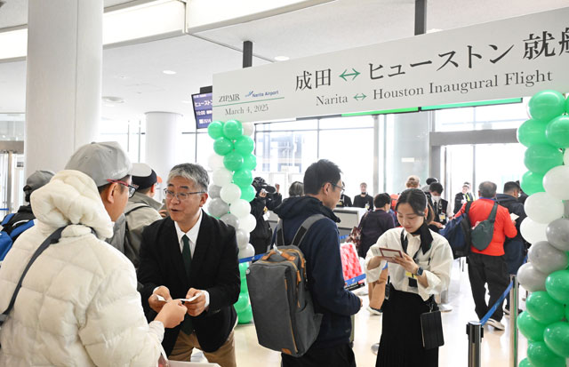 成田空港で4日に開かれた就航記念式典で、ZIPAIRの西田真吾社長は、「ヒューストンはテキサス州にあり、米国内でもっとも人口が増え、経済が発展しつつあると言われている都市。玄関口のジョージ・ブッシュ・インターコンチネンタル空港は、米国国内線のネットワークも充実しているが、中南米への国際線も充実している」とあいさつ。ヒューストンと日本の往来だけでなく、アジアと北米の3国間流動や、ヒューストン以遠の乗り継ぎ需要も取り込んでいく姿勢を示した。