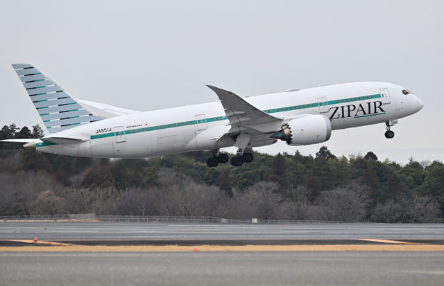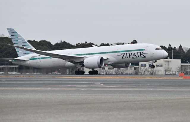 ZIPAIRの機材は現在787-8が8機。JALが2機発注済みの787-8の新造機2機は、2026年度上期の受領を予定しており、10機体制に到達する。その後は胴体が約6.1メートル長い787-9を導入して機材を大型化し、目玉のZIP Full-Flat増席など、新たな成長につなげていく計画で、詳細はJALが3月中に発表を予定している新たな中期経営計画の中で明らかにする。