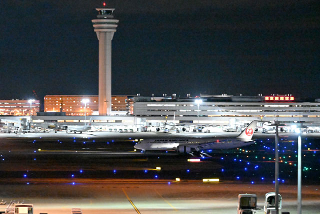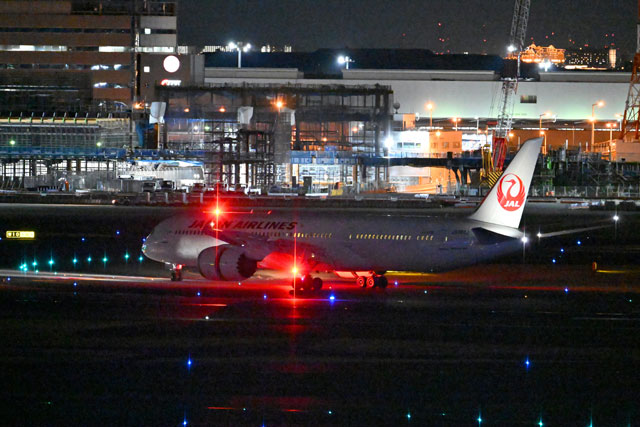 羽田空港に着陸するシアトルで接触事故を起こしたJALの787-9 JA868J=25年3月7日22時51分 PHOTO: Tadayuki YOSHIKAWA/Aviation Wire