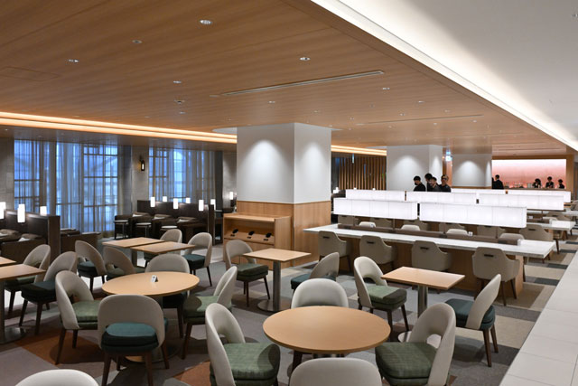 関空の国際線新ラウンジ「KIX Lounge Premium」のダイニング=25年3月15日 PHOTO: Tadayuki YOSHIKAWA/Aviation Wire