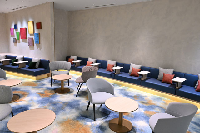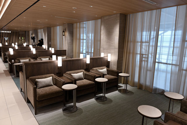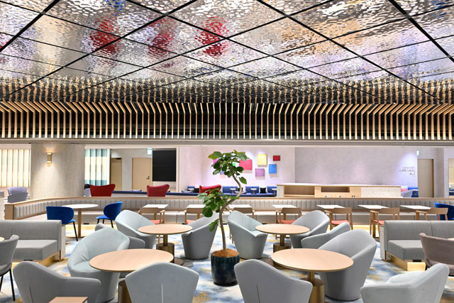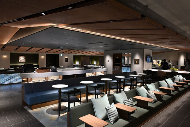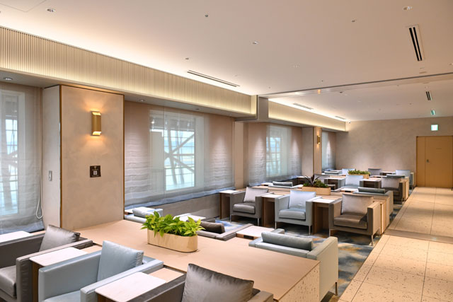 国際線エリアの再編に合わせ、これまでは航空会社ごとに設けていたラウンジを共用施設に変更し、3階中央部に集約。関空にしかない「古都と都市」をコンセプトにしたKIX Lounge Kansaiと、最上級クラスの乗客を対象により高級感を演出したKIX Lounge Premiumを用意した。