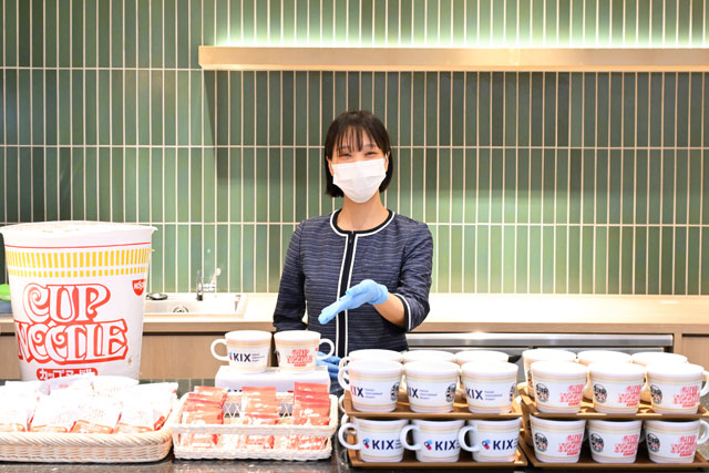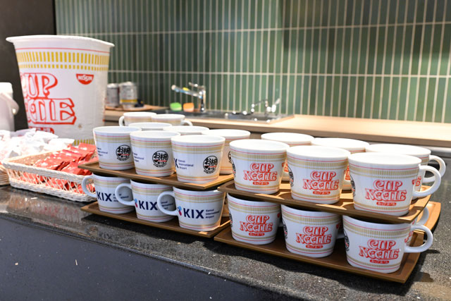 関空の国際線新ラウンジ「KIX Lounge Kansai」のノースサイドにある日清カップヌードルのコーナー=25年3月15日 PHOTO: Tadayuki YOSHIKAWA/Aviation Wire