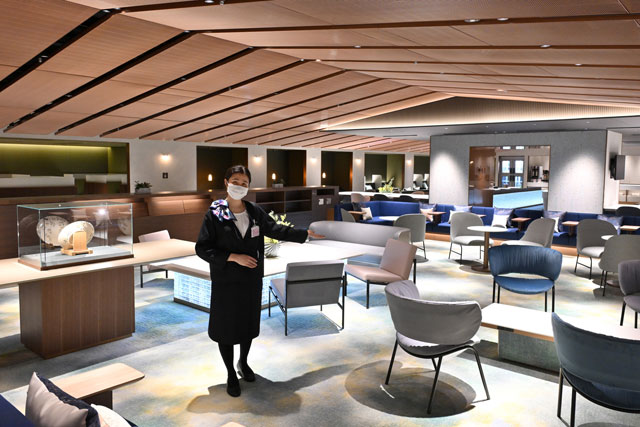 関空の国際線新ラウンジ「KIX Lounge Kansai」のレセプション=25年3月15日 PHOTO: Tadayuki YOSHIKAWA/Aviation Wire