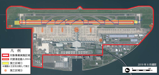 中部空港の代替滑走路整備の施工区域(中部国際空港会社の資料から)