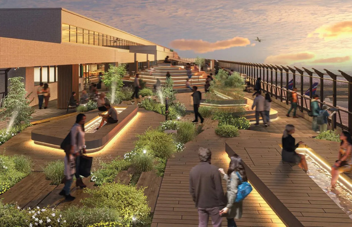 成田空港第1ターミナル5階の展望デッキに新設するウッドデッキ(NAA提供)