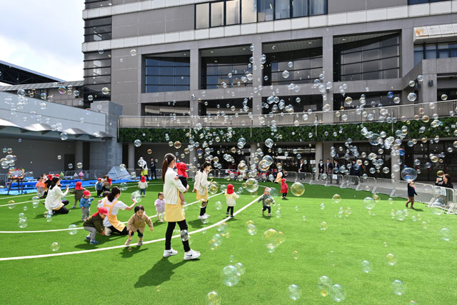 今回のリニューアルでは、人工芝を敷いた約500平方メートルの園庭を新設。これまで空港外で実施していた運動会などが、空港内で開催できるようになった。空港で働くスタッフが安心して働き続けられる環境づくりの一環として、育児支援の充実を図る。