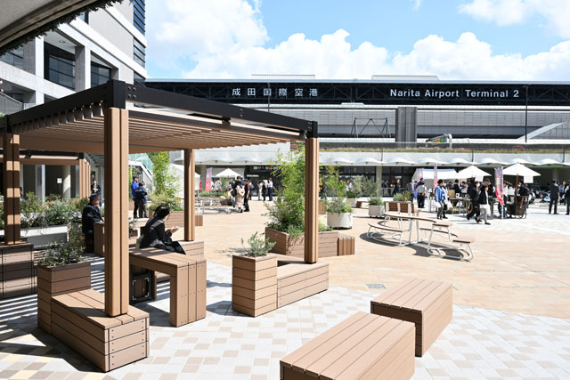 成田空港第2ターミナルに隣接する中央広場をリニューアルした「Popo Park」=25年4月4日 PHOTO: Tadayuki YOSHIKAWA/Aviation Wire
