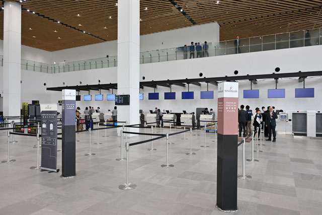 搭乗口は国際線が3つと国内線が1つの計4つで、出発ロビーの席数は国際450席、国内120席で、キッズスペースなどを設けている。一方、物販は国際線側の免税店のみで飲食店はなく、軽食を販売する。