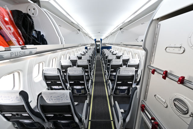 トキエアの3号機ATR42の機内=25年4月24日 PHOTO: Daigo TAKENOBU/Aviation Wire