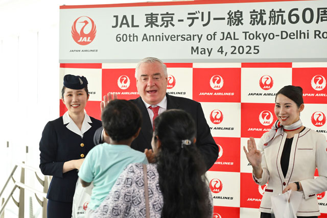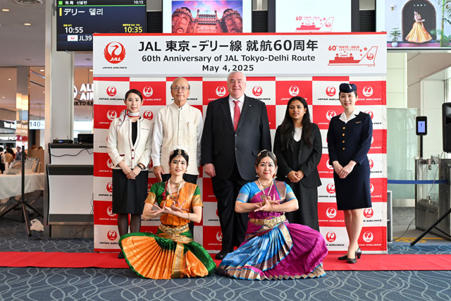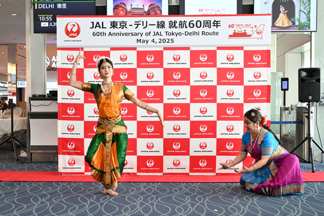羽田でデリー行きJL39便の出発前に開かれた記念式典で、路線事業本部長を務めるロス・レゲット常務は「1992年にデリー線は構造改革の一環で休止したが、4年後の1996年にインド新経済施策の定着や日本人旅客需要が順調な伸びを示し、直行便で東京-デリー間の運航を再開できた。日本の航空会社として、初めて両国の首都を直行便で結んだ」とあいさつした。また、記念式典では南インドの古典舞踊「バラタナティヤム」が披露された。