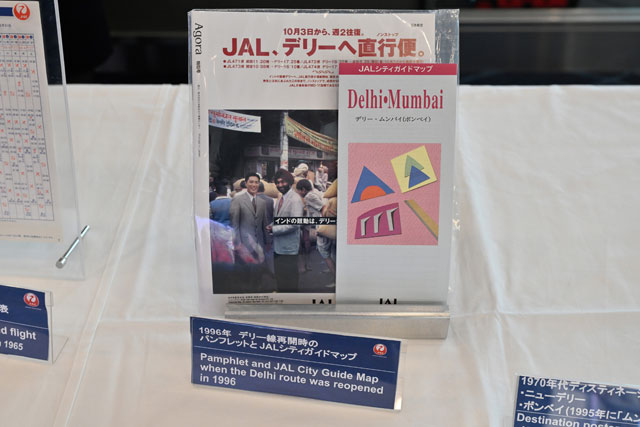 羽田第3ターミナル114番搭乗口に展示されたデリー就航当時の史料=25年5月4日 PHOTO: Tadayuki YOSHIKAWA/Aviation Wire