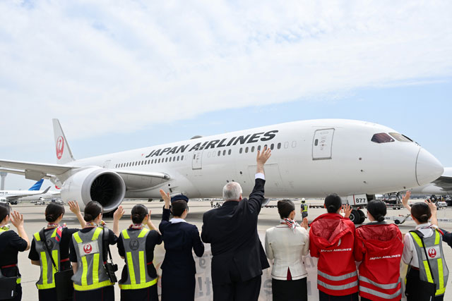 羽田空港でデリー行きJL39便を見送るJALのレゲット常務ら=25年5月4日 PHOTO: Tadayuki YOSHIKAWA/Aviation Wire[/caption]