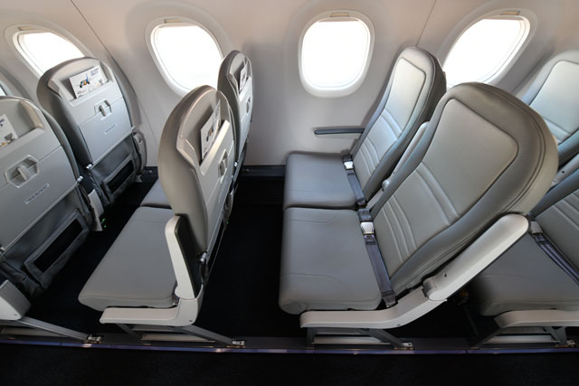 E190-E2飛行試験機の29インチ席=18年7月15日 PHOTO: Tadayuki YOSHIKAWA/Aviation Wire